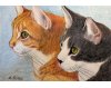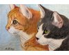 I used my photograph to outline the simple shapes and used a variety of colored pencils. The support is a smooth, hot press heavy watercolor paper. A variety of yellows, burnt orange and raw sienna were used for the ginger cat, Vincent. Jules, the tabby, is a variety of warm light and dark grays.