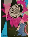 My goal for this painting was to abstract the picture plane using my flower sketches to create a new variation of the natural forms. Collage lends itself well to abstraction, and I edited the shapes and eliminated many of the details. Sometimes too many details are a distraction and weakens the design. The diagonal geometric linear design adds depth to the natural patterns of the flower. Another goal was to limit my palette. I changed the colors of the original sketch and kept the design simple. The tonal pattern adds interest and pattern to the composition.